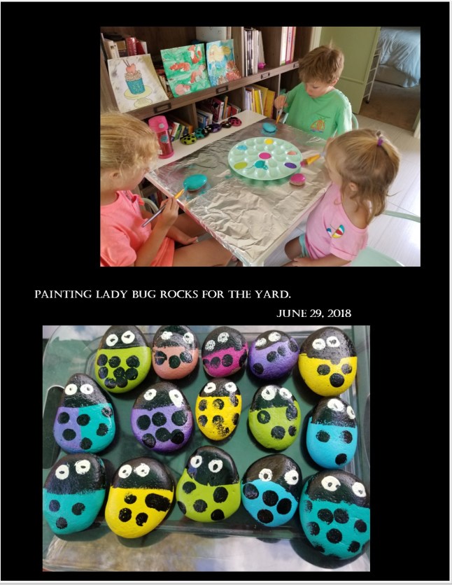After making garden ladybugs out of rocks. We left them to dry before Nana sprayed them with an outdoor clear sealant. Now there are three yards with cute little garden critters.
