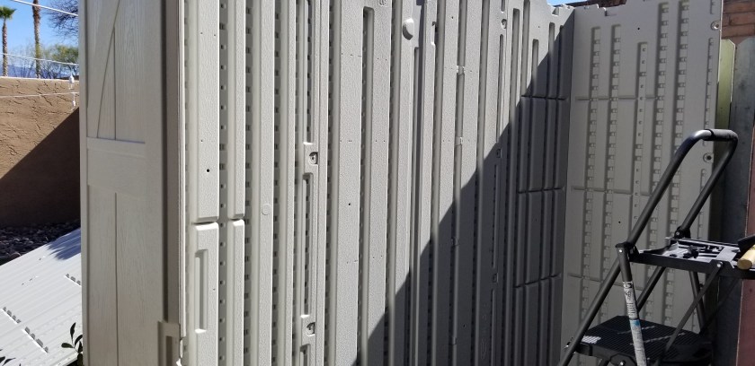 Max and Abby are normally at my home a couple of days a week. They have grown bored with the same old sand table and their outdoor toys were for the younger ones. I had the brilliant idea of making them a little “clubhouse”. Shouldn’t be difficult. After all, I have put together those vinyl sheds before and thought that would be the most durable and affordable way to go. AmazonSmile.com to the rescue. Free delivery and they put it right at the front of your garage door. Easy peasy – right?