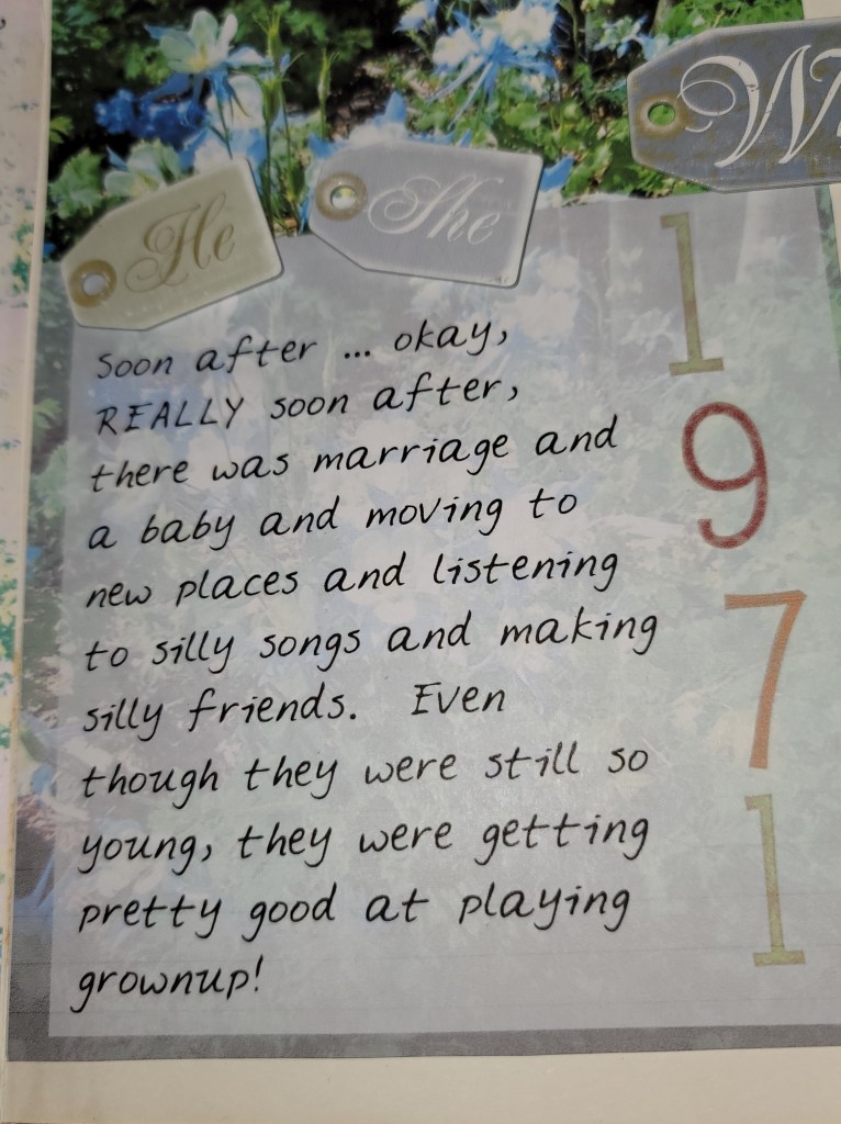 Of course, Bob took all of the credit for getting you and Jeffry together. He pushed the subject until Jeffry got the confidence to ask you out … and you said “no”. But I think it was your mom who forced the issue and then he got his “yes”. We were thrilled. And still are. Bob still took all of the credit, of course.