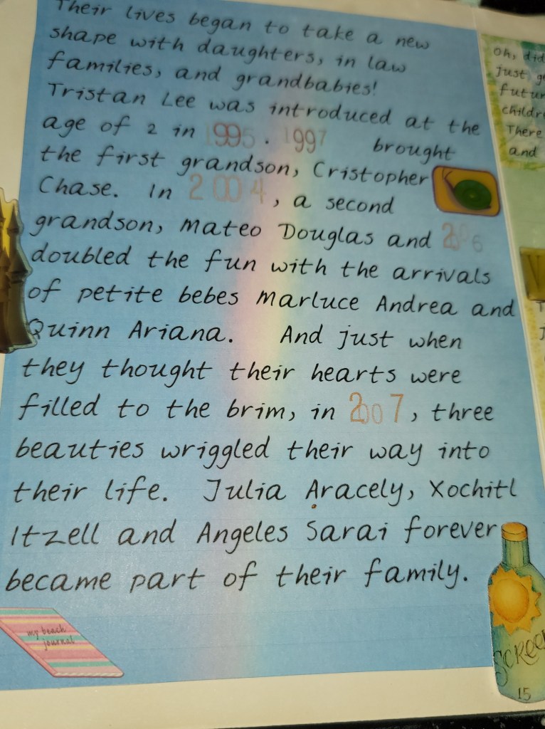 When you joined our family you opened our hearts in ways you don’t know. My only regret is that Dad never got to know you in person. He would have enjoyed watching the grandkids mature and he would have been egging them on in their funny antics. But you. He would have been head over heels with you. He would have loved listening to you talk about your parents and your family life in Bolivia. He would have hung on each and every word.