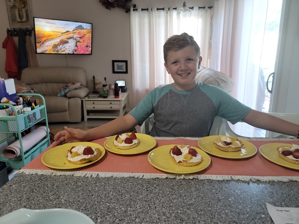 AUGUST 25, 2021 – Week 2: Ginny took charge of the main course of Lil Smokies wrapped and baked in crescent rolls cut into thirds. Now, Ginny is not one for a lot of manual labor. Just not her thing. I was cutting the crescent rolls into mini size triangles and handing them off to Ginny, who rolled perfect little pigs in a blanket. We had about 2 dozen to make, when, after the third one, Ginny announces that she is tired and is going to need some help. Nana is going to help you out. No worries. Apparently she had not made herself clear. “no, Nana. Someone else needs to finish these!” I giggled inside and convinced her to “take one for the team”, and she did. But what a sense of relief for her when we finished and she was cheerfully off to wash her hands and settle in with a bit of cartoons. Finally! Some relaxation for the kids!!