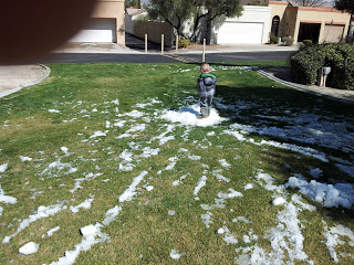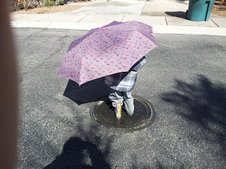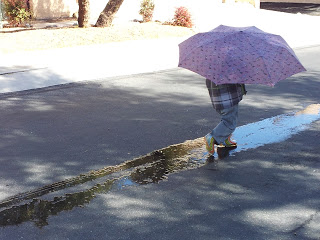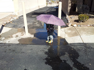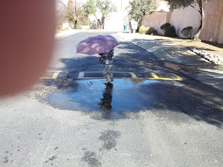 Since Tucson had gotten (gulp) quite a bit of snow on Wednesday, Max and I decided to head out on Thursday to hunt for puddles for jumping in! Galoshes on his feet and raincoat donned, we walked the entirety of this little neighborhood on our quest for puddle perfection.