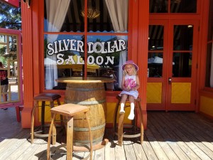 Max and Abby started the camp day early with a Trail Dust Town Excursion. Max took a 20 dollar bill and stood in a not very long line to obtain 2 wristbands. Of course, the first stop was the railway station. Max insisted on being in the first car after the conductor and upon returning, Abby exclaimed loudly with covered ears … “I am NEVER riding in that car again. It was bidiculously loud!”