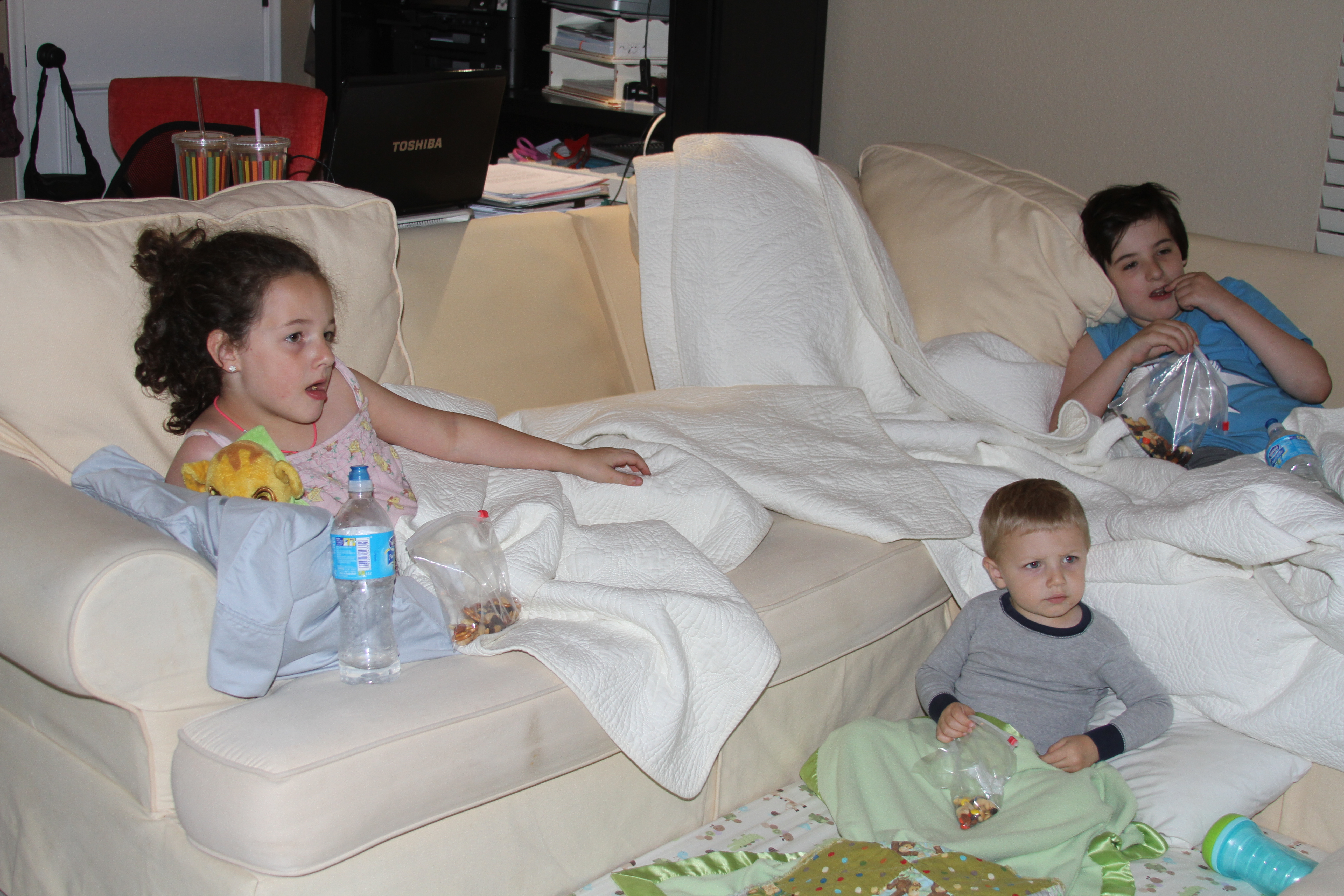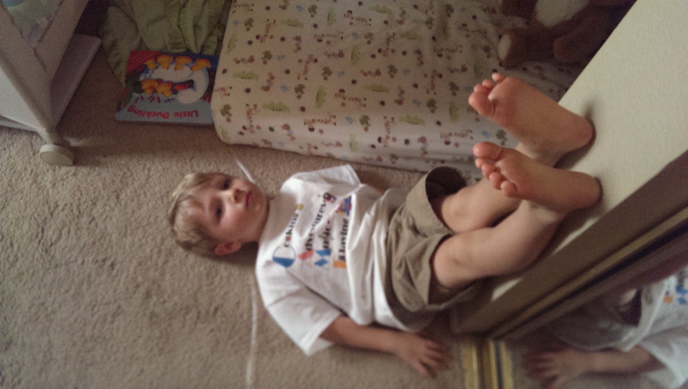 After a nice lunch and an almost two-hour nap (them – not me) it was time for Poppa to read some of the new books from our excursion to Bookman’s. Abby had to have the giant storybook that I made so she could sit inside of it. A little toy time to take up the rest of our camp day.