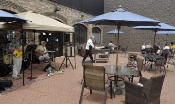 (music and singing begin, and as the music and singing fill the air, one little voice stands out. Because he thinks that the hostess maybe did not hear him, Max removes himself from his chair and stands maybe a foot away from the singing hostess. All the while the music plays on,)