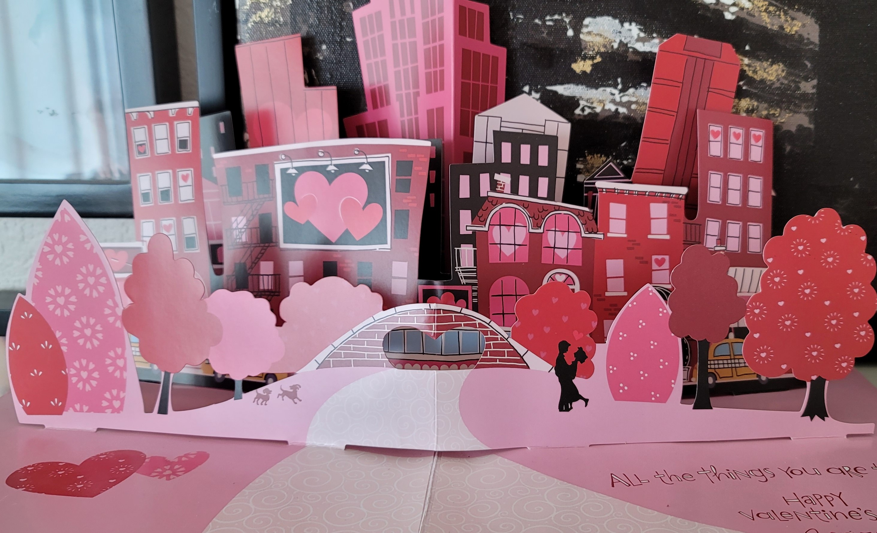 This big pop up card reminded me of New York City – and you. How we loved that city. And when you opened the card, Harry Connick Jr. sang “It Had to be You”. That day and for the next week you would sing the song; not all the way thru because we all know you did not know the words to any song 100%. Once in a while you would hold me and dance while you sang it. I close my eyes and remember. A lot. The card does not play music anymore. But I still pop it open and put it on the bookshelf every February.