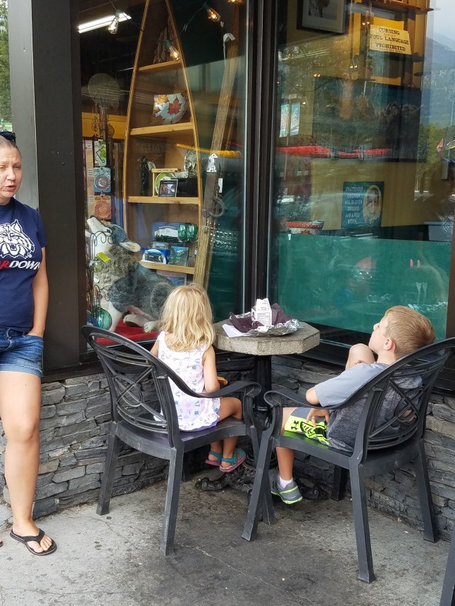 It’s a good thing that we are leaving the dangerous downtown of Victoria. The kids were almost eaten by a Canadian bear!! Poor little things were terrified.