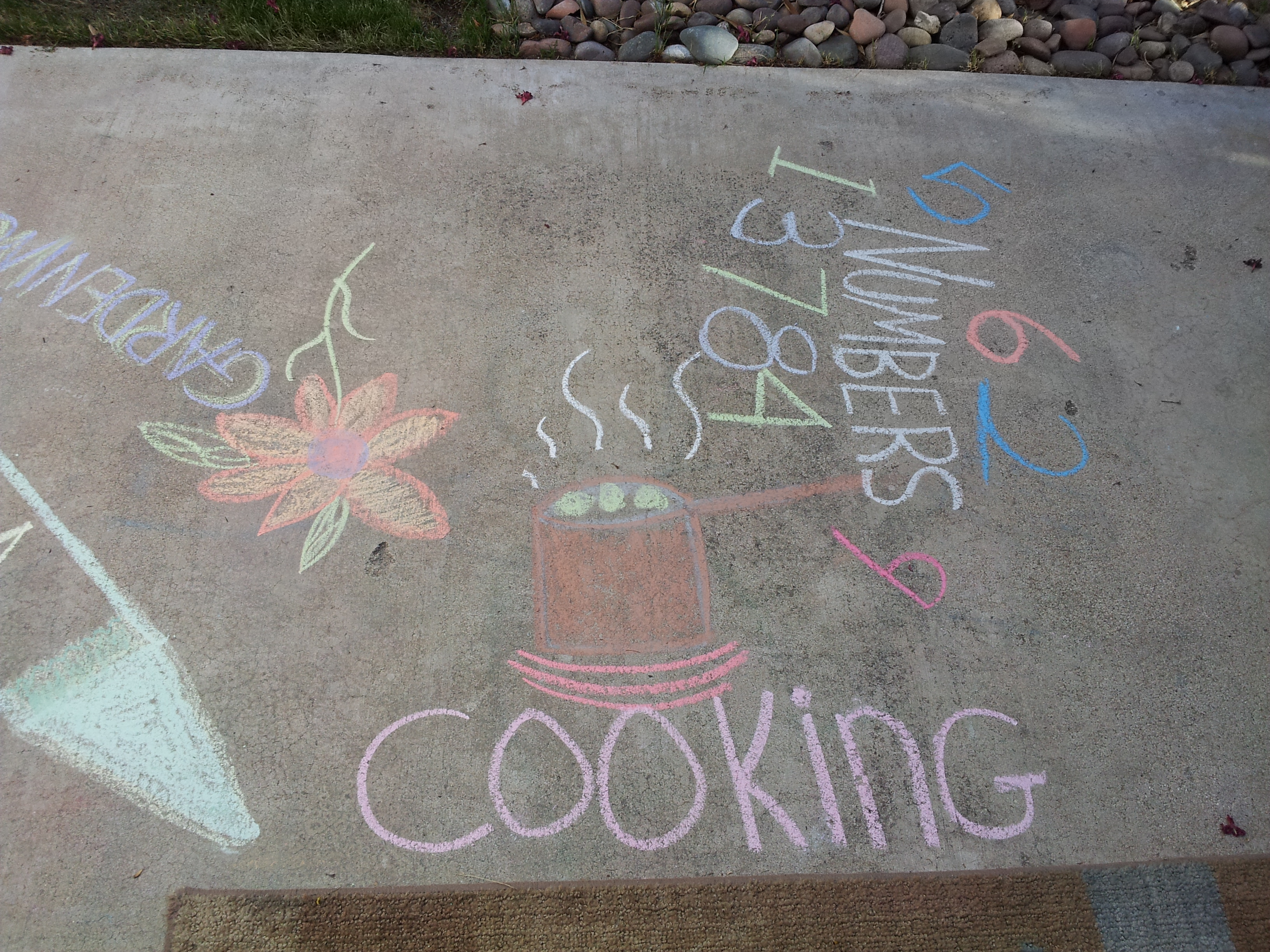 I announce the annual Camp NANA in chalk on the back patio. Max is impressed. Max is so impressed that shortly after he sees it, I hear the unmistakable sound of hose water and see that he has entirely washed my promo away. Fame is so fleeting.