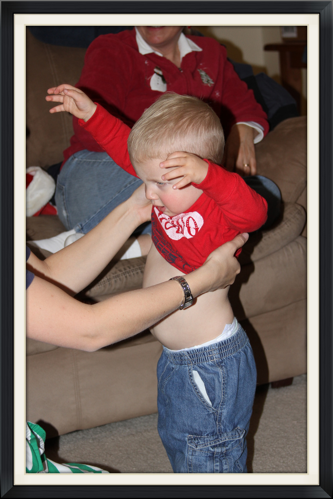 I won’t repost my recent Christmas Eve events since I just posted, but suffice it to say it goes down in my holiday history as one of the best ever.  I am still smiling.   Christmas Day was a relaxing day of early morning visits with the kids and Mundles and Max and Abby while Maggie served scrumptious french toast and Max opened gifts.  Max, taking some time to show his gifts to his audience, enjoyed each and every moment.   Received a really nice phone call from Ricky which is always a treat.  Later on, a yummy honey baked ham dinner at Chris and Maggie’s with Matt and the kids and grandbabies topped off a wonderful Christmas 2012.