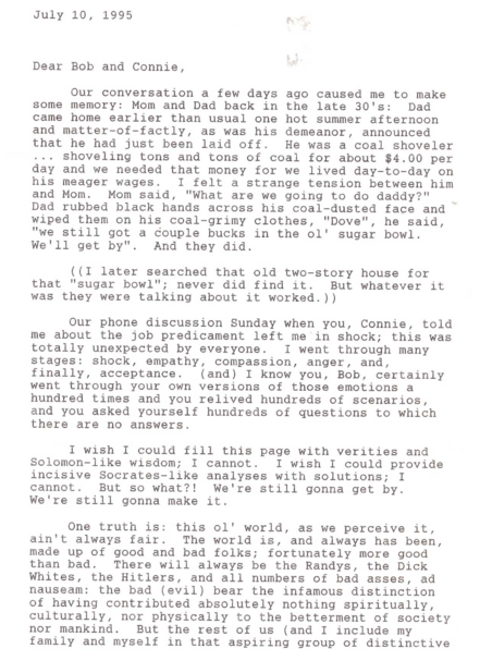 This was a letter written by your hero – none other than my Dad – after you lost your job at Beaudry’s. Of course, his words hit home, as they always did. He left us less than a month after he penned this. This is from me to you this time, with so much love.